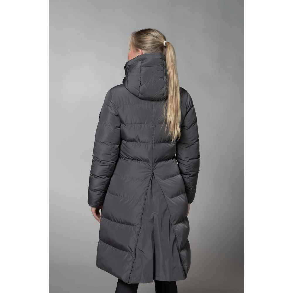 Crafted from a water-repellent fabric with warm padding, this coat provides reliable insulation and weather protection. Practical details include two front flap patch pockets, a secure inner zip pocket, and a two-way front zipper with a sporty logo puller for comfort and flexibility in the saddle. The adjustable hood with wide trim, eyelets, and drawcord offers customizable coverage, while the concealed long zipper with fabric insert at the back ensures added mobility when riding. Soft internal jersey cuffs at the sleeves lock in warmth, and the subtle logo embroidery and rubber badge add a stylish finishing touch. Designed for riders who value both elegance and practicality, this coat is a dependable companion for stable life and beyond.